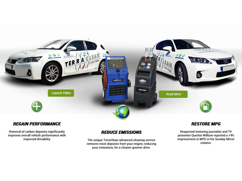 A TerraClean service involves linking your vehile to our unique equipment which using highly refined fuels and patented process will remove carbon and other lacquers which build up in your engine, thus restoring vehicle efficiency, improving MPG and reducing harmful emissions - as well as prolonging the life of various components, thus reducing the costs of ownership.